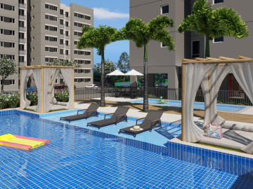Composto por 6 torres residenciais – agrupadas em ímpares (1, 3 e 5) e pares (2, 4 e 6) –, o projeto oferece um total de 450 apartamentos distribuídos de forma estratégica, garantindo ventilação cruzada, luminosidade natural e uma vista privilegiada dos espaços comuns.